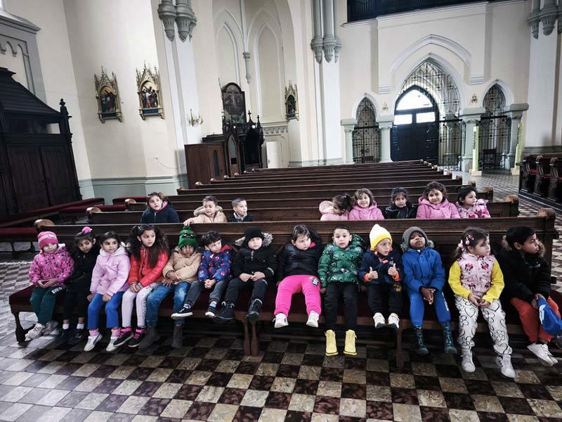 Děti poznávaly jeho interiér, prohlížely si obrazy, sochy a vitráže.