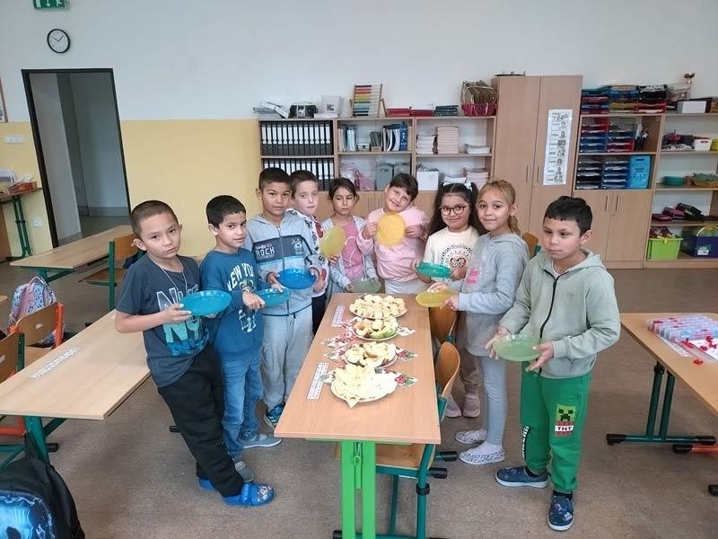 V naší 2. A třídě nám paní asistentka Lenka Rumpíková s láskou připravuje dodané ovoce a mléčné výrobky tak, abychom si mohli pochutnat, vyzkoušet nové chutě a zároveň se učit kultuře stolování – jíst slušně, dělit se a být ohleduplní ke spolužákům. Tyto společné ochutnávky si všichni moc užíváme.